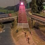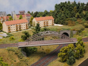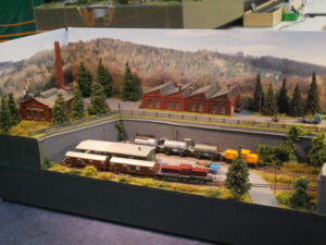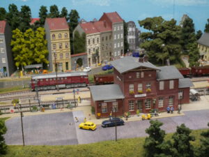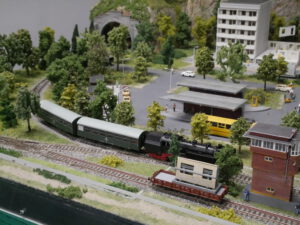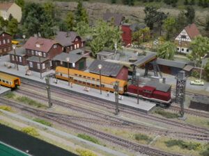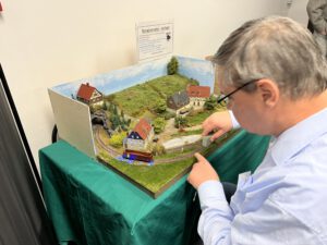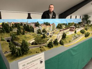 Im Mittelpunkt unserer diesjährigen Modellbahnausstellung stand natürlich unsere H0- Vereins- Segmentanlage. Im Bauzustand wurde unser Projekt zur Modellbahnausstellung 2020 erstmals öffentlich vorgestellt. Das Projekt stockte leider immer wieder im Weiterbau in der Corona-Zeit. Ende 2022 wurde der Weiterbau wieder aufgenommen und der aktuelle Bauzustand zur Modellbahnausstellung 2024 präsentiert: Die Segmentanlage wurde um zwei weitere Segmente ergänzt. Der Kopfbahnhof erhielt Bahnsteiganlagen mit Bahnhofsgebäude und Güterschuppen. Stadthäuser und weitere Gebäude sind inzwischen fast fertiggestellt und wurden „Probe“ gestellt. Mit der Ausgestaltung und Ausschmückung wurde begonnen… Die Digitaltechnik wurde vom manuellen digitalen Fahren auf PC-Automatikbetrieb mit einem Modellbahn-Steuerungsprogramm umgestellt. Die Anlagenbetreuung wurde durch die Vereinsmitglieder Hans Schulz, Annalena Schulz, Falk Ehrke, Christian Glawe, Ingo Poggendorf und Henry Annies abwechselnd sichergestellt.